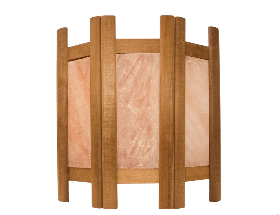 Соляной абажур в раме из термолипы для бани станет отличным дополнением деревянного интерьера не только бани или сауны, но и жилых помещений.