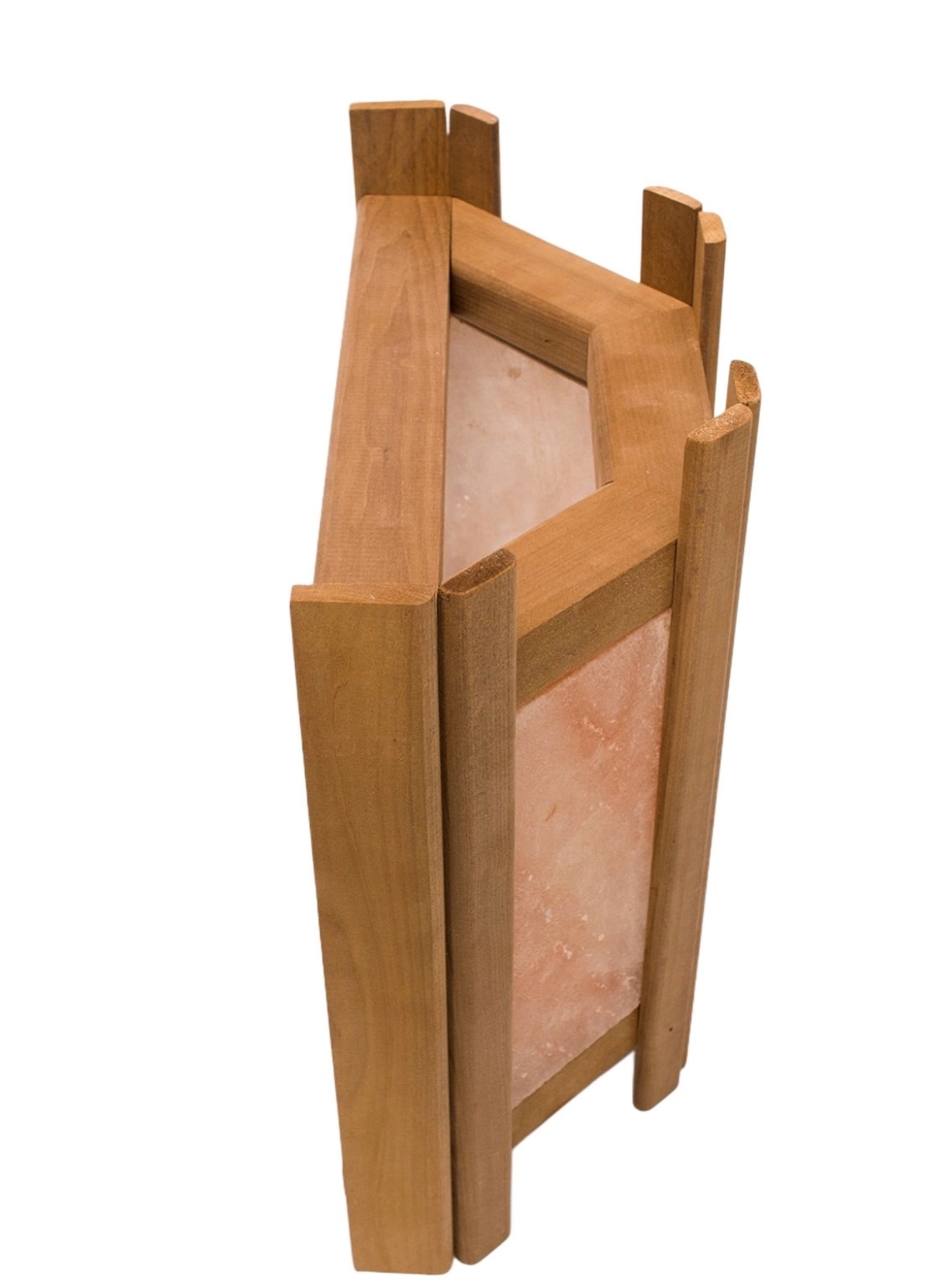 Рама для соляного абажура изготовлена из натуральной термолипы, которая после этапа термообработки не оставляет древесного сахара, следовательно, не привлекает бактерии и насекомых, а значит – не гниет.